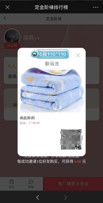 (2)用户可查看到通过该活动下定金的订单获取的一级分销奖金的由多到少排名的前100 位用户,初始显示6位,点击更多显示全部,最多100位