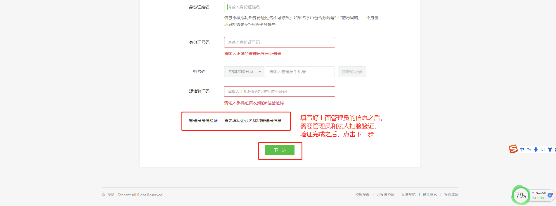 第三步:填写好注册地、主体类型、主体信息和管理员的信息。