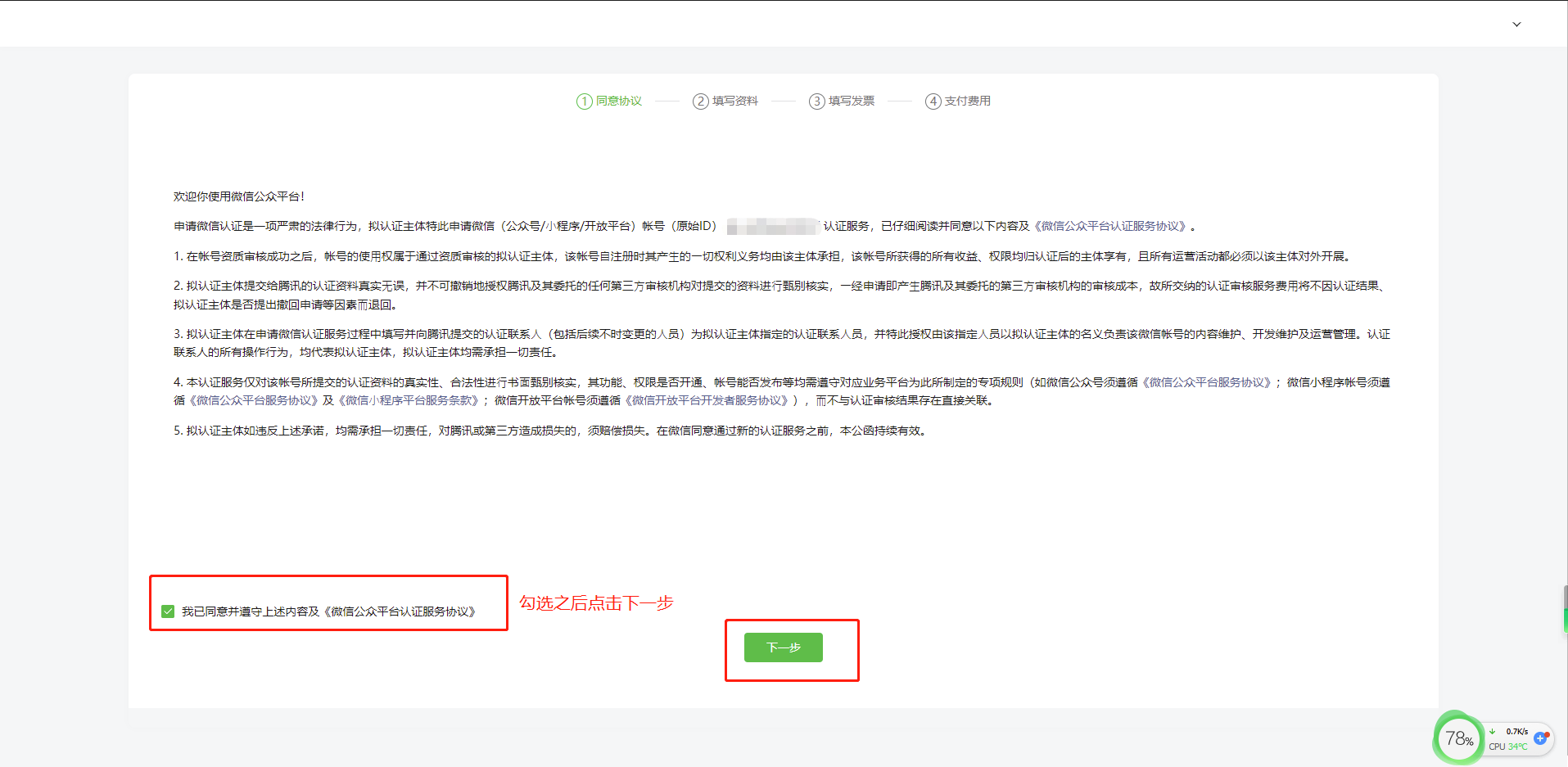 第四步:点击下一步,勾选同意协议后点击下一步,进入填写资料。