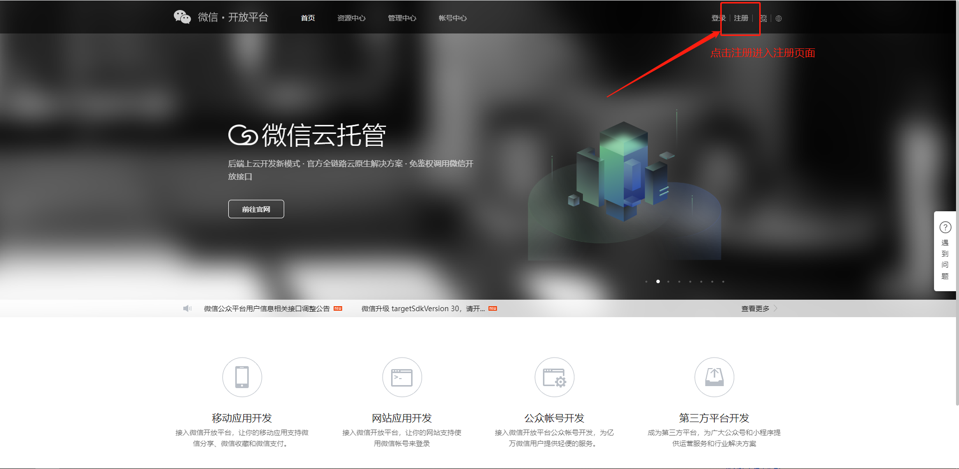 第一步:进入微信开放平台:https://open.weixin.qq.com