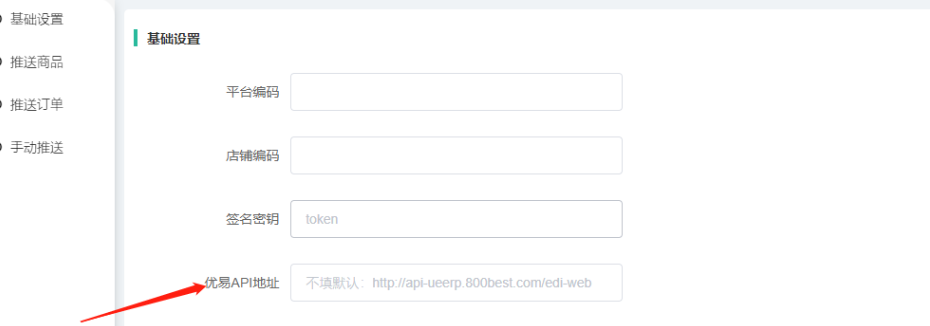 技术有处理在插件基础设置添加了一个手动设置的栏,如果不确定使用的是哪个api地址可以和优易客服核实一下,填写对应的在后台优易API地址处即可,之后再留意看下商品是否有推送成功同步显示在优易后台