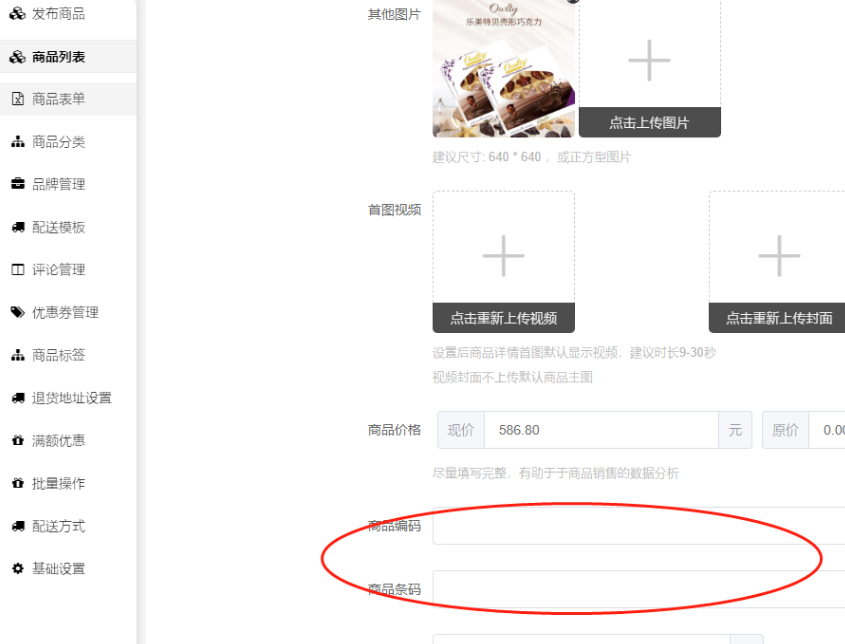 回复:检查一下商品编辑--基本信息、或者是否是多规格商品,规格里面的商品编码、商品条码是否都有填写完整